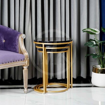 Set of 3 – Black / White Corner Pillared Centre Table