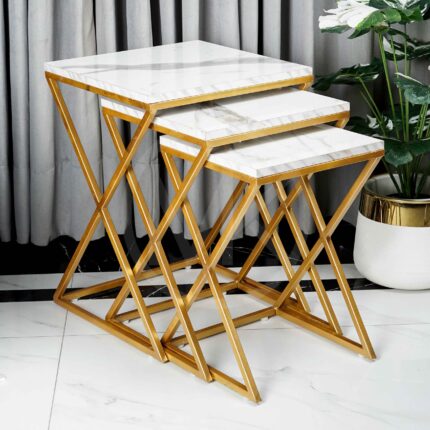 X Pattern Nesting Table Set Black / White – Set of 3