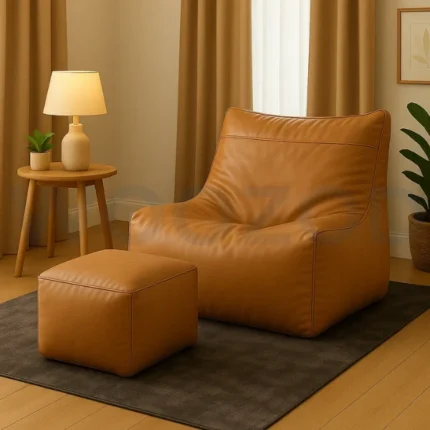 Woozod Executive Leather Bean Bag Sofa with Stool