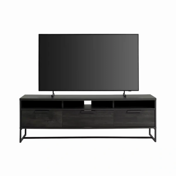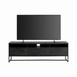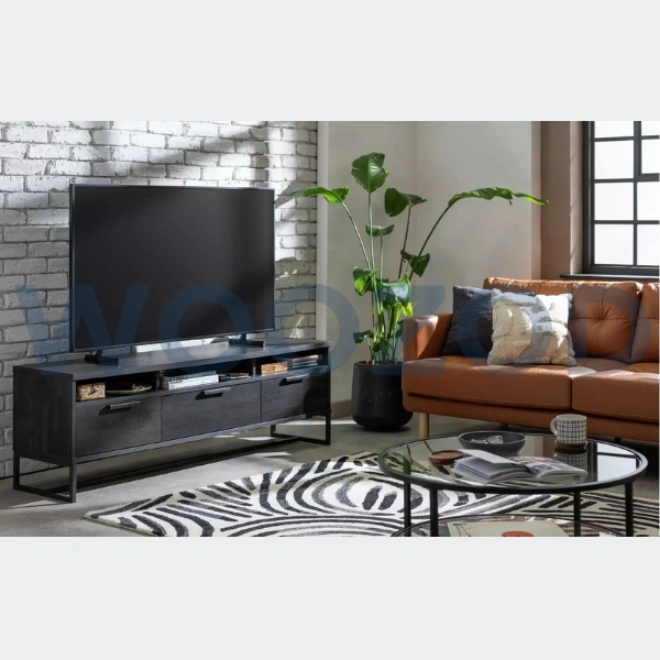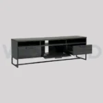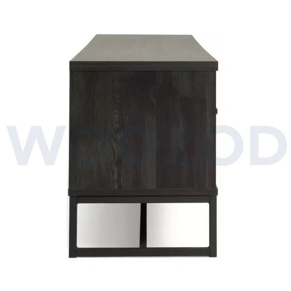 Woozod GRADLE – Textured Black TV Console with Metallic Frame