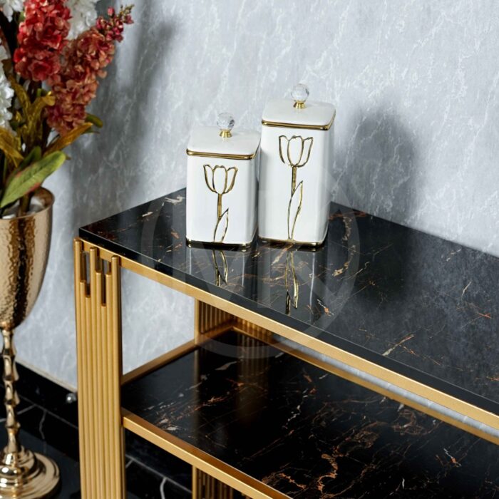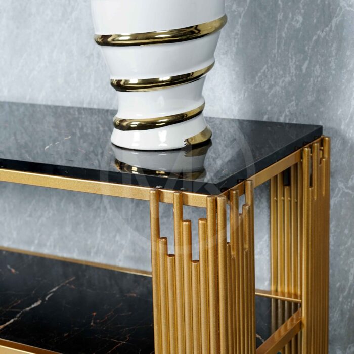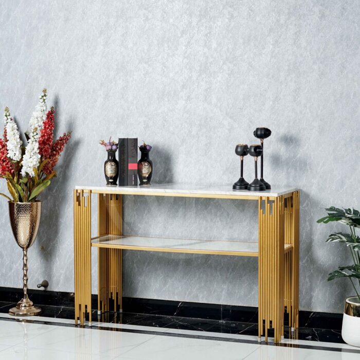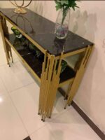 Elevate your space with this premium console table, perfect for enhancing any modern Pakistani interior. Featuring a glossy MDF top, this stylish console table adds a luxurious touch to your décor while maintaining a sleek, minimalistic design. The metallic frame is finished with advanced Stormic Pro coating for unmatched durability and a refined, contemporary look. Ideal for entryways, living rooms, or offices, this versatile console table offers a chic surface for displaying décor and a practical space for organizing essentials. Crafted for the modern home, this console table is available with nationwide delivery in Pakistan.