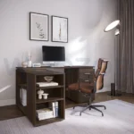 With an overall size of 59.8″ W x 47.2″ D x 29.5″ H, the spacious tabletop provides ample room for your laptop, documents, and office accessories. Its dark walnut finish exudes a sophisticated and timeless appeal, blending seamlessly with both traditional and modern interiors.