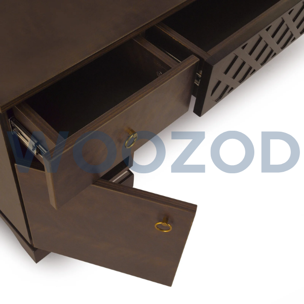 The dresser stands on kiln-dried solid wood legs, ensuring stability and long-term durability. Furthermore, smooth finished edges protect against moisture seepage and warping, allowing the piece to maintain its shape and finish over time.