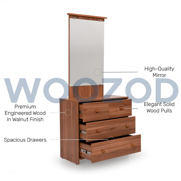 Woozod Dressing Table in Walnut Finish