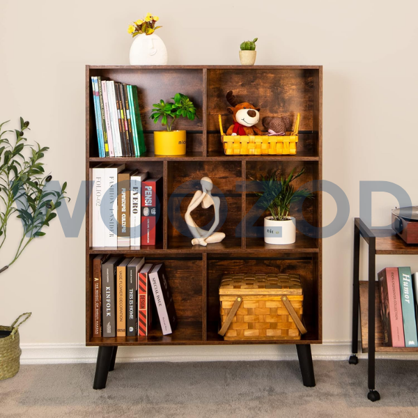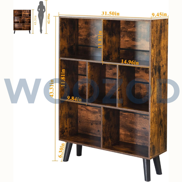 The Woozod LeyaoYao Cube 3 Tier Bookshelf features a mid-century rustic brown finish with sturdy legs and open cube shelving. Perfect for bedrooms, living rooms, or offices, it offers stylish storage and display space for books, d?cor, and essentials.