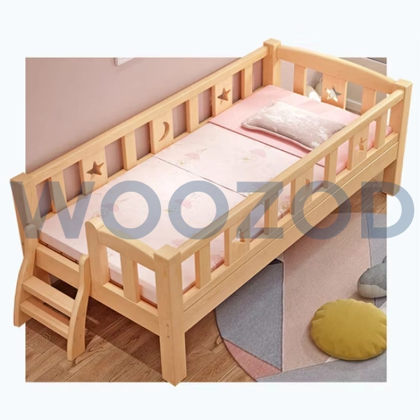 The Woozod Modern Single Size Children’s Bed combines safety and style. Crafted from durable wood, it features protective barriers and a sleek design, offering a secure and comfortable sleeping space for babies and young children.