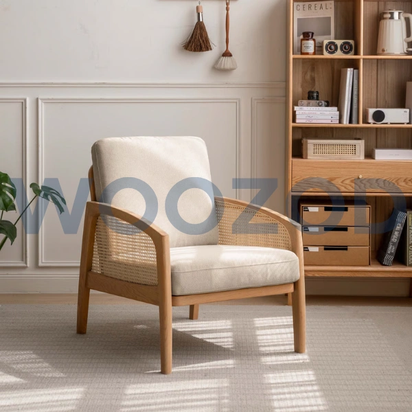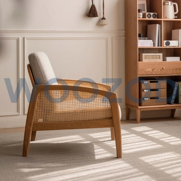 For comfort, the chair includes high-density polyurethane foam cushions on the seat and back. The foam keeps its shape even after long use. Soft cotton-linen fabric covers the cushions, giving them breathability and a gentle touch. The removable seat cushion and cover make cleaning simple and convenient.